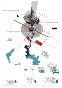 D center @ MAP announces H2OMG, its second exhibition in its storefront gallery at 218 Saratoga Street. H2OMG responds to and expands on the geographic and conceptual boundaries challenged by University of Virginia School of Architecture Professors Robin Dripps, Lucia Phinney, and Jorg Sieweke at Design Conversation #28: Re-envisioning Public Infrastructure. Sieweke’s work explores the future of the Jones Falls River that once shaped the city and has been neglected and buried in an underground culvert to make room for an inner city expressway, while Dripps and Phinney’s studies reveal the potential for a new form of local infrastructure including intersecting networks of rainwater harvesting, collection, and distribution; local agricultural production, processing and sales; and local material salvaging, repurposing, and commercial distribution. A portion of the work in the exhibition was created by students in Sieweke’s graduate design studio at UVA.