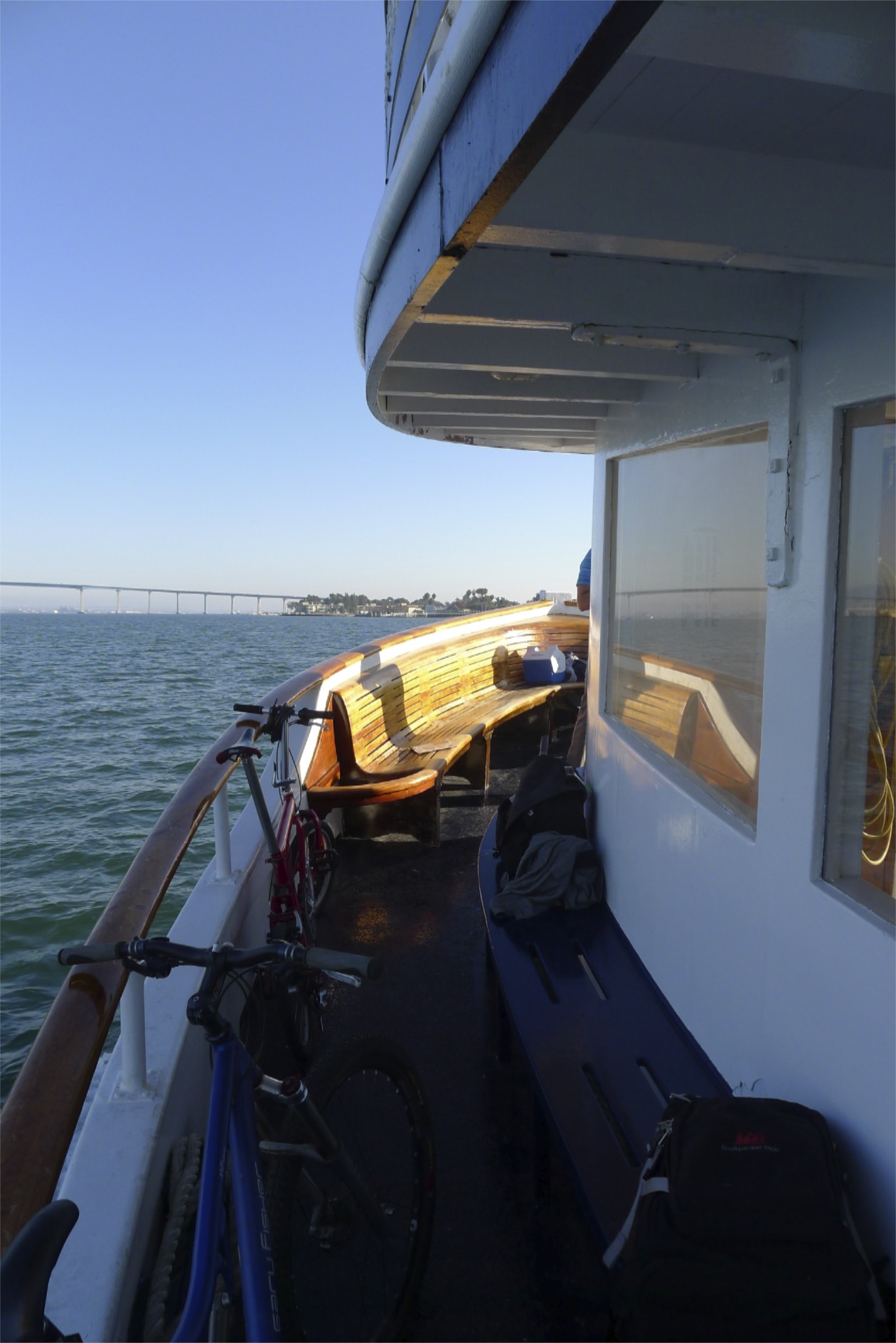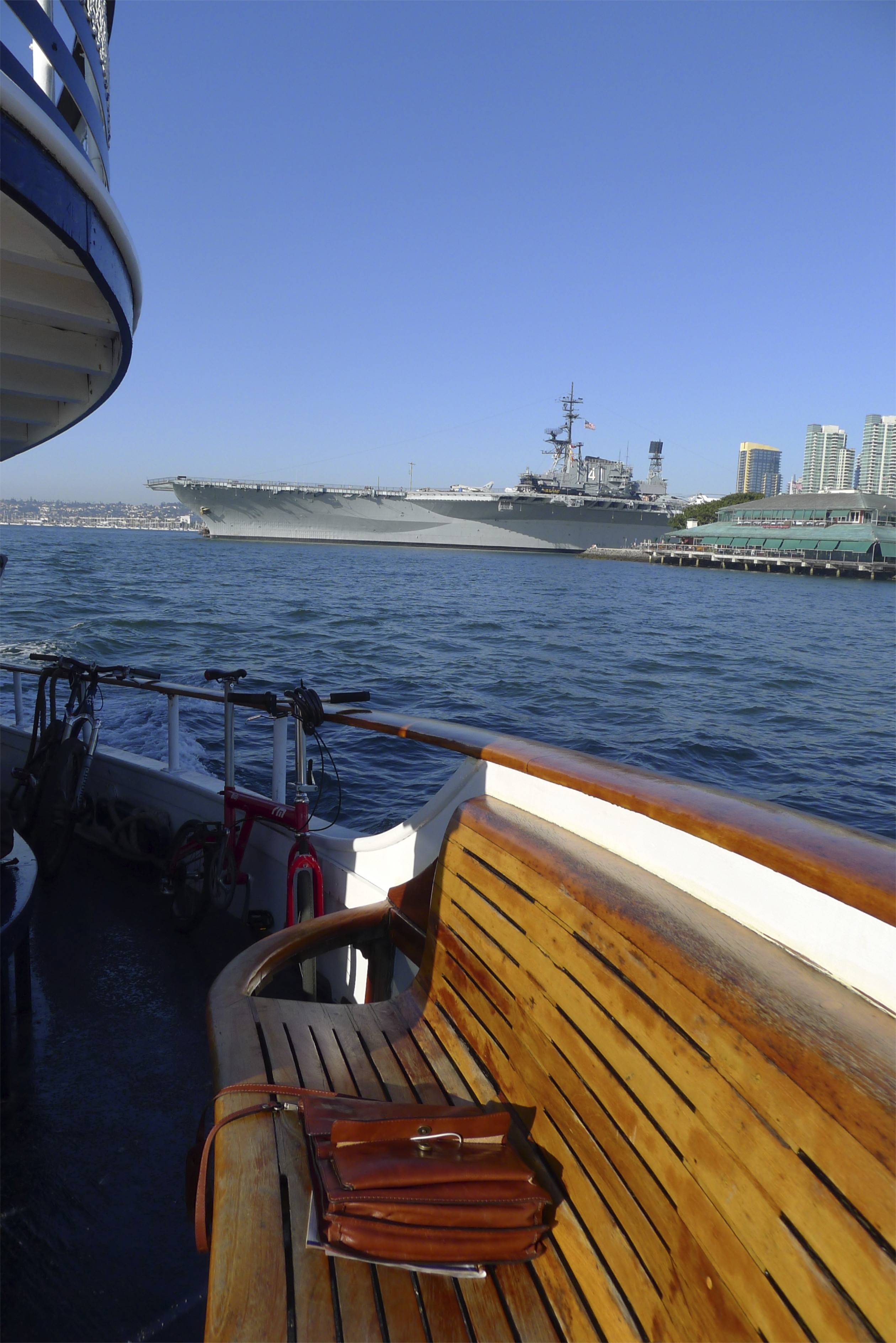 after quick assembly and a ride along the bay we are on the ferry and past a klunkly aircraft carrier.