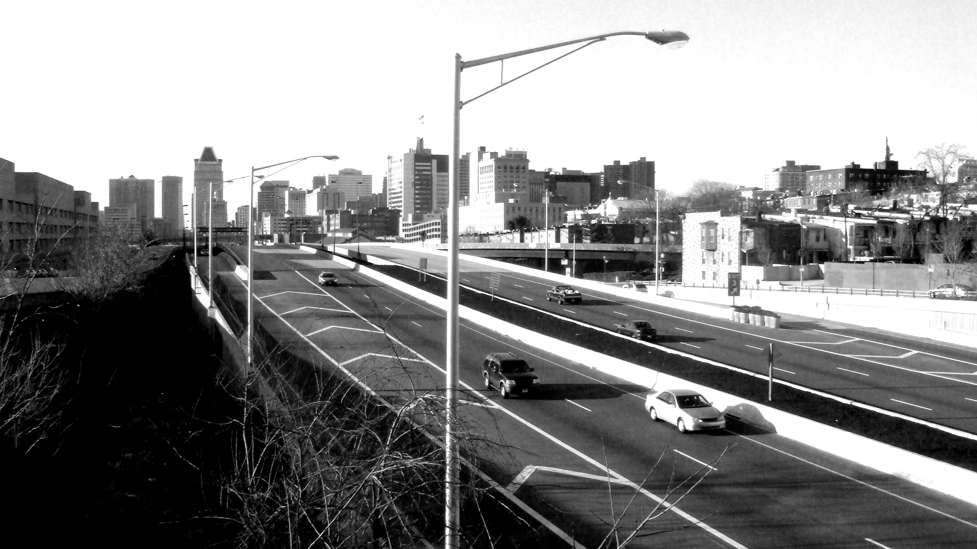HISTORY The Jones Falls river shaped the valley and created a delta in the inner harbor. The river provided fresh water and energy and served as the natural infrastructure to found the emerging city. With Jonestown -the first settlement on the east bank the regulation of the river begun. Sever flooding occurred and washed out the early settlers businesses and church. In the further process of modernization the river was first walled and finally was submerged and degraded as a sewer to give room for transport infrastructure on the surface. For a brief time span in history the rail was introduced along the corridor and pulled out again for the most part. In the age of mass motorization (1960s) the roads were scaled to an expressway that reaches as an elevated structure into the Inner city and harbor area. Protest at the time prevented to build a cloverleaf over the inner harbor and left the interstate traffic disperse into the downtown fabric. The incomplete expressway funnels traffic into the downtown area that wants to go elsewhere.