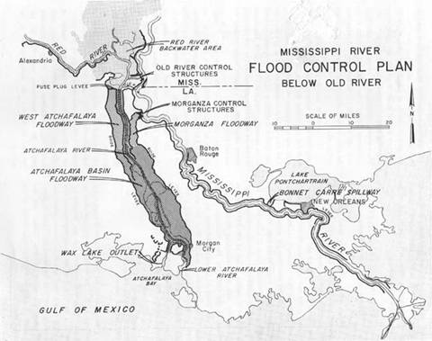 As John McPhee ends his chapter on the Atchafalaya it is not a matter of if but when the Mississippi will divert into the shorter and steeper path to the Gulf through the Atchafalaya Basin. The 2011 Mississippi spring flood brought this scenario to the fore again. The engineered river system was already at its limit and all floodways had to be operated to not only take the pressure of New Orleans levees, but also of the system of the Old River Control structures. Based on a decision by US-Congress and implemented by the ACOE the Old River Control Structures north of Baton Rouge hold the river back from writing the next piece of history.