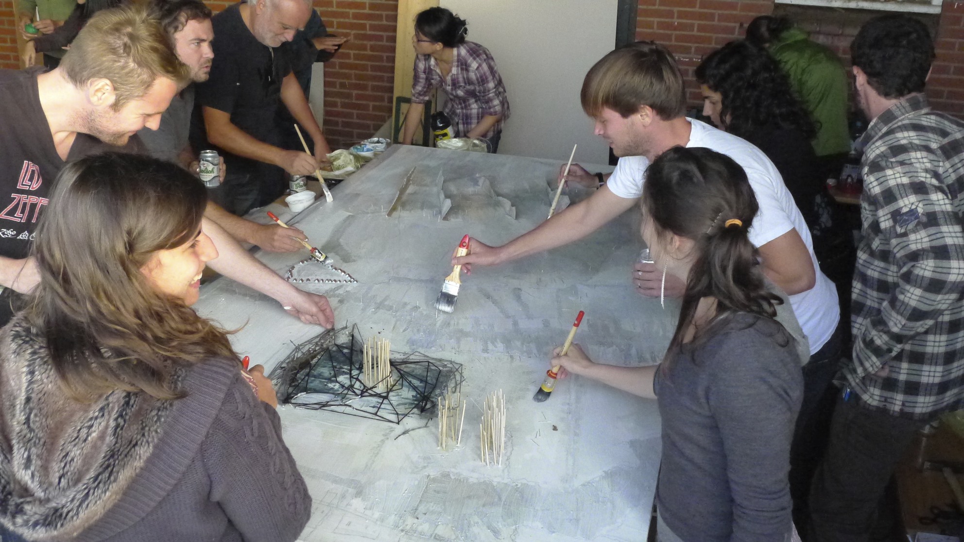 Jorg Sieweke lead six Uva students to participate as the US guest team in an european workshop of five participating landscape architecture programs. Third year students Alexa Bush, Beth Bailey, and Kurt Marsh and second year students Kate Hays, Michael Geffel and Lingyi Gu traveled to the Netherlands on invitation of the Amsterdam Academy.