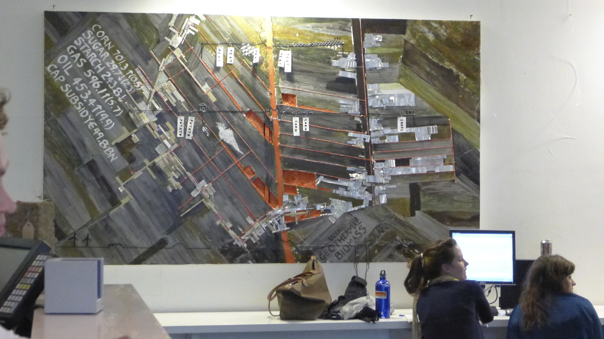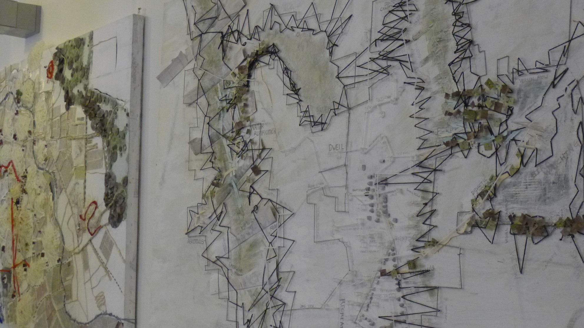 The European concept of “cultural landscape” apperas to be much more inclusive relative to the american conotation of the term and concept. The discourse about the production of landscape relative to its preservation was most instructive. The idea proposed by Marieke Timmermans to collectively produce three canvases to represent the landscapes investigated created an intense workshop of “realtime thick 2D palimpsest making”. The outcome beautifully represent how landscapes represent a layered temporal quality: they reveal something about their past, their presence and some insight into their future. The agency of landscape!