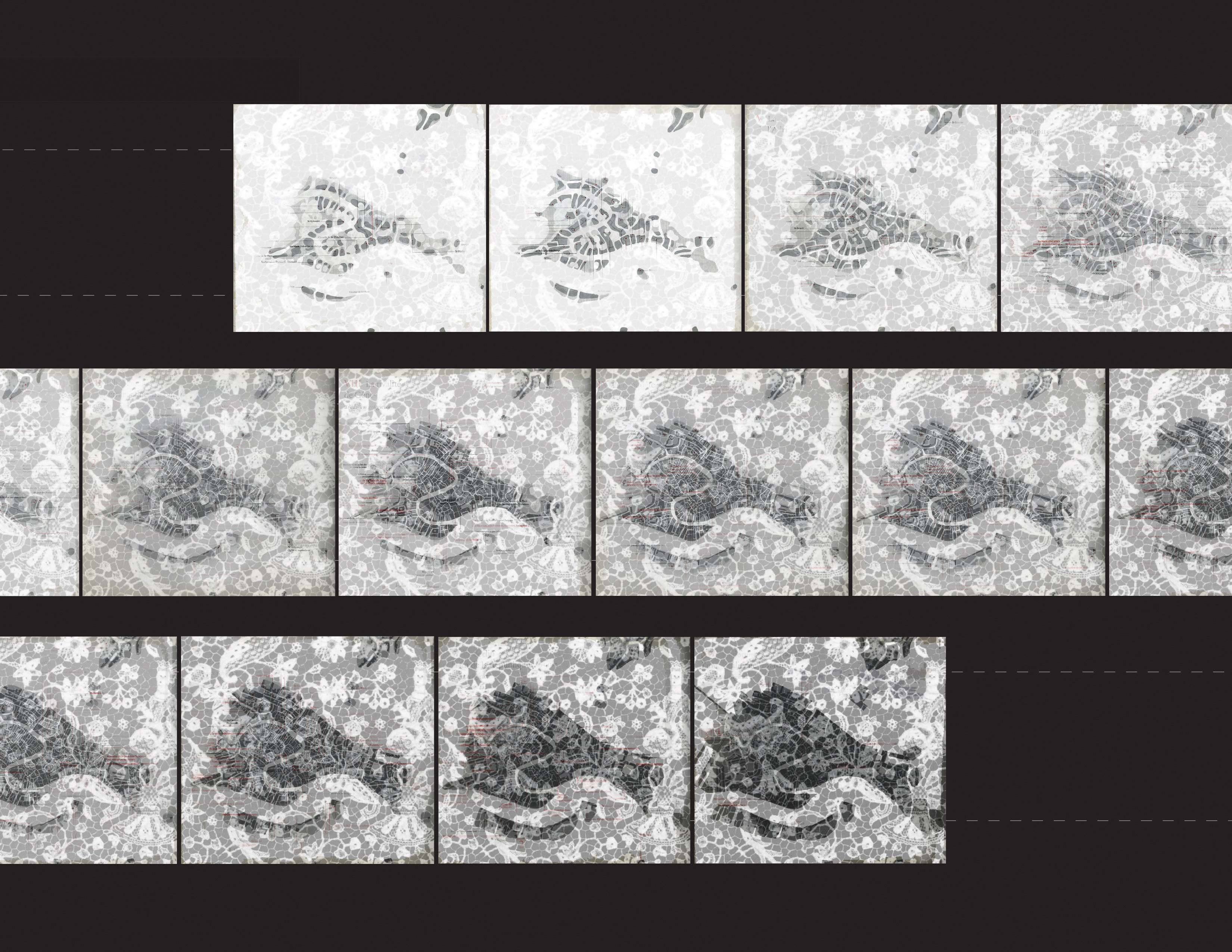 Terra Nova addresses these shortcomings through the development of an aquatic geotextile that could be employed throughout the lagoon as part of a new ground-building regime of incremental sediment accretion and supplementation. The geotextile uses patterns of perforations that open and expand like gills to capture and hold sediment. This is applied in layers and pulled and contorted into gradient conditions by a system of flexible woven strips that provides further variations in density and texture along the surface. The layered combination of these two systems creates a surface that gradually thickens and thins in section and opens and closes in plan. This would encourage a slow and varied buildup of ground and the shifting emergence of a diversity of lagoon morphologies and interdependent ecosystems.